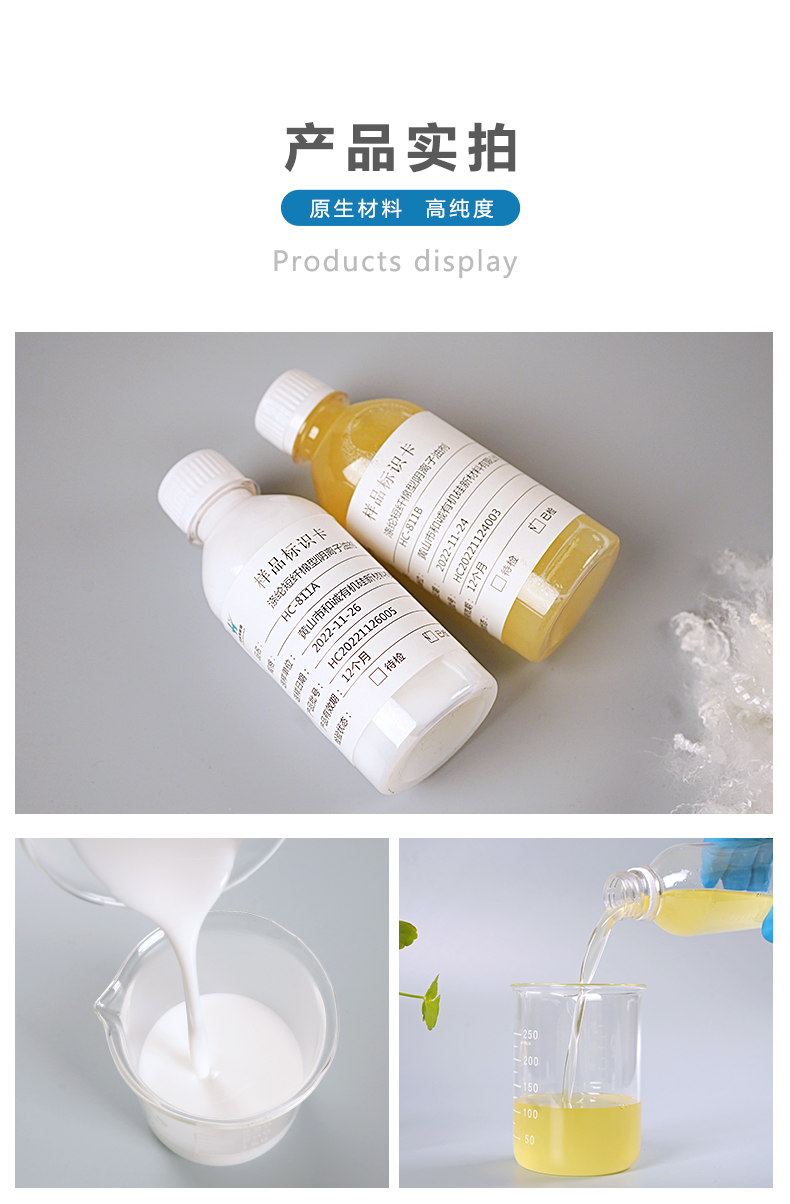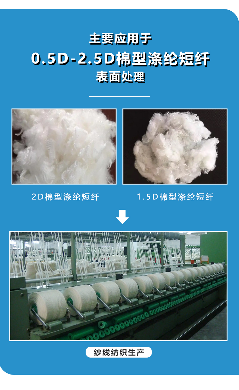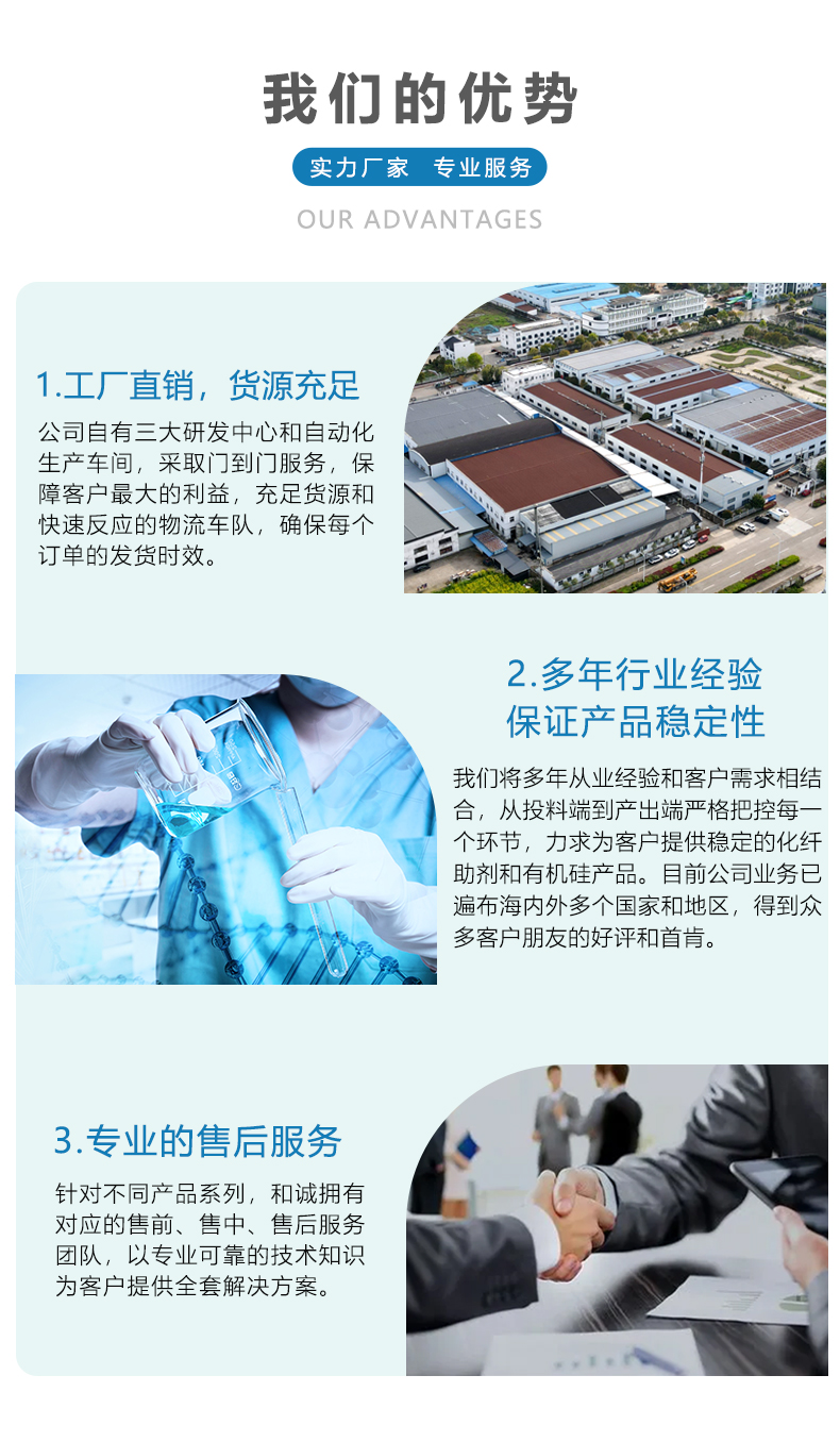 公司產(chǎn)品分為化纖助劑產(chǎn)品系列、抗靜電劑產(chǎn)品系列、功能性助劑產(chǎn)品系列、有機(jī)硅乳液產(chǎn)品系列、硅油產(chǎn)品系列等。