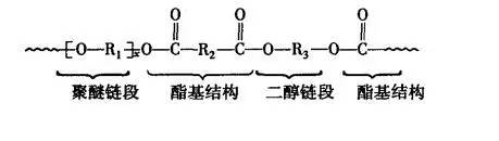 聚醚酯彈性纖維是由聚酯和聚醚共聚物通過熔融紡絲制得的彈性纖維,日本帝人公司于 1990 年首次生產(chǎn)。聚醚酯彈性纖維與聚氨酯彈性纖維結(jié)構(gòu)類似,也具有“區(qū)段”結(jié)構(gòu)特征?!败洝辨湺沃饕蔷勖焰湺?,柔軟性好,鏈較長,容易伸長變形;“硬”鏈段則是聚酯鏈段,相對較僵硬,易于結(jié)晶,鏈較短,在纖維受力變形時(shí)起節(jié)點(diǎn)作用,賦予彈性回復(fù)性能,并決定纖維的強(qiáng)力和耐熱性。