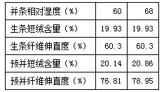 棉纖維在并條工序先保濕、再吸濕,回潮率應控制在(6.8±0.5)%為宜。預并條的相對濕度要求在65~70%左右,此時纖維呈現(xiàn)吸濕狀態(tài),可提高纖維表面的摩擦系數(shù),以保證牽伸過程中羅拉對纖維的握持牽伸力,從而可提高纖維的平行伸直度,不同溫濕度條件下纖維伸直平行情況見表2。精梳工序?qū)貪穸鹊囊筝^高,一般要求回潮率保持在63~68%之間,以保持纖維處于外干內(nèi)濕的微放濕狀態(tài),有利于分梳元件對纖維的分梳。精梳工序如相對濕度過大,易粘卷、粘皮輥和羅拉,棉網(wǎng)易出現(xiàn)破洞。相對濕度過小則易出現(xiàn)靜電,產(chǎn)生棉網(wǎng)破邊、毛條。當精梳條回潮率控制在(65土2.0)%時對生產(chǎn)較為有利,可確保精梳條烏斯特條干值在3.2%以下。